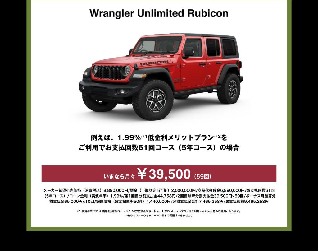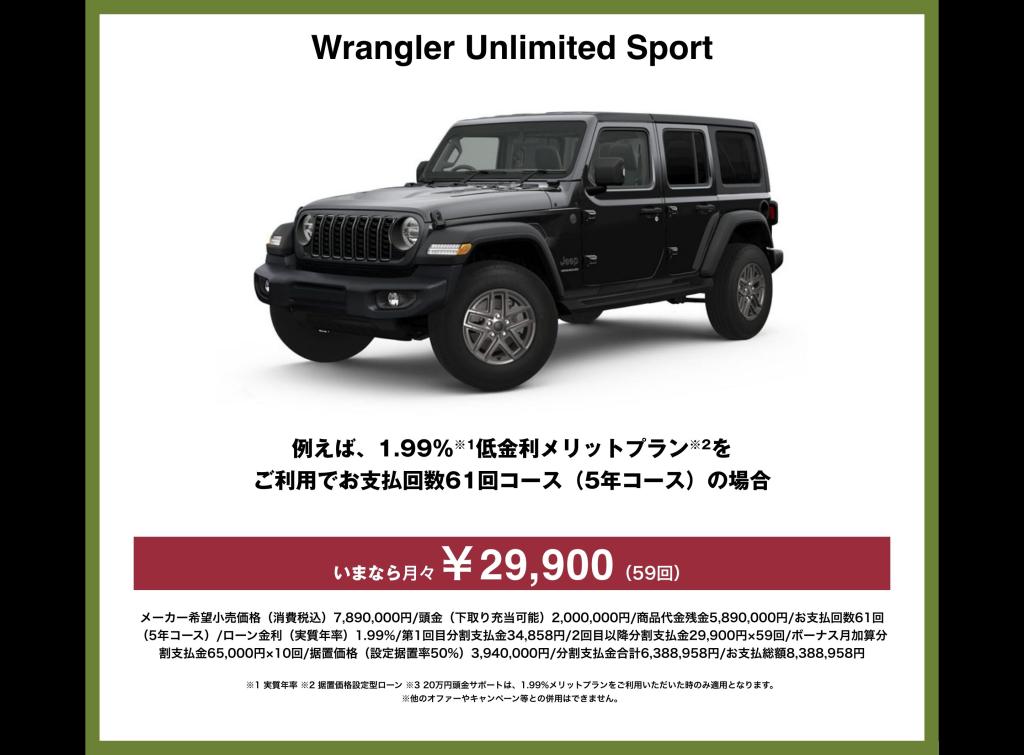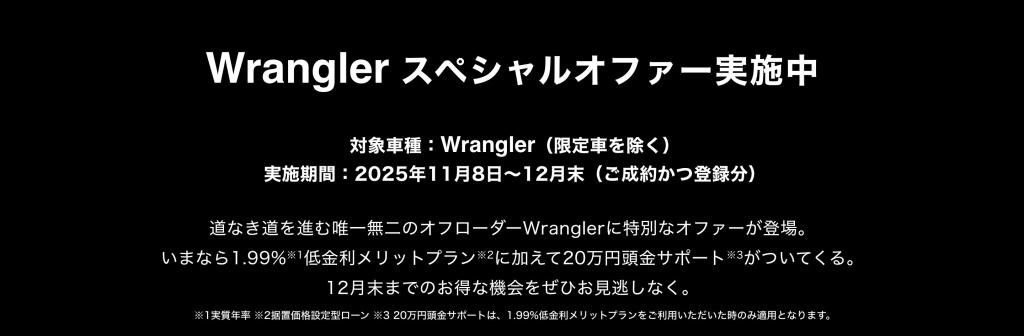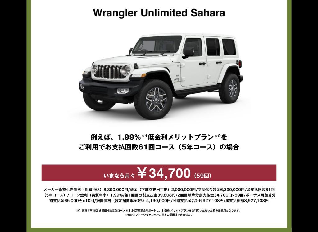 ラングラー 1.99%+20万円サポート ですよ??